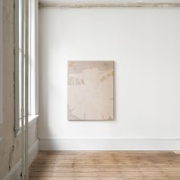 Contributed by Ben Godward / Choong Sup Lim says that he doesn’t paint his sculptures but rather finds the color in the city. This might be the most important aspect of his show “Yard” (Madang) at Shin Gallery. Color as form – in this case, linen and detritus from the city – yields a pallet of neutrals. Linen, the substrate of painting with a capital P, takes a star turn here. Much of the show consists of raw linen, and it is as important in the sculptures as it is in the paintings.