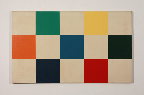 In 1973 Saxon began making abstract work based on the grid format, initially using watercolor on paper and then industrial paint on raw canvas. The same year he began exploring the idea of monochromatic canvases — a series of acrylic drawings consisting of white and off-white squares arranged into groups of three to five panels — but tabled the idea a year later to focus his attention on paintings organized around a nine square grid structure. For the past thirty years, Saxon has worked with the monochrome and it’s relationship to its surroundings–the wall, the floor, its location within the exhibition space, and the viewer. In addition to his studio work, Saxon is a writer and has had his essays published in Artforum, Art in America, Appearances and other respectable art mags.