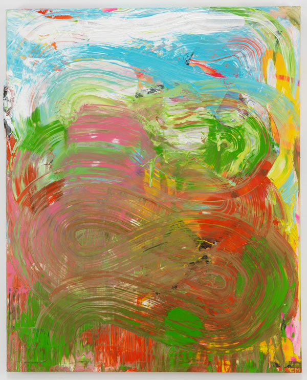 “These forms come from a long process of unconscious drawing. Then there is this desire to see it in paint– a kind of compulsive curiosity that drives me to choose colors, mix up buckets of paint, and prepare a surface. The actual performing of a painting involves giving oneself over to a series of actions and trusting in the body and what the body knows. And when I step back to look at this thing, I’m still trying to figure it out just like everybody else…. It’s funny – recently I’ve been asked to teach. When I show up the students think here comes the teacher — he knows what he’s doing. The students imagine that some day they’ll grow up to be like the teacher and then they will know what they’re doing. But I don’t know what I’m doing. And I try to communicate that to my students. ‘