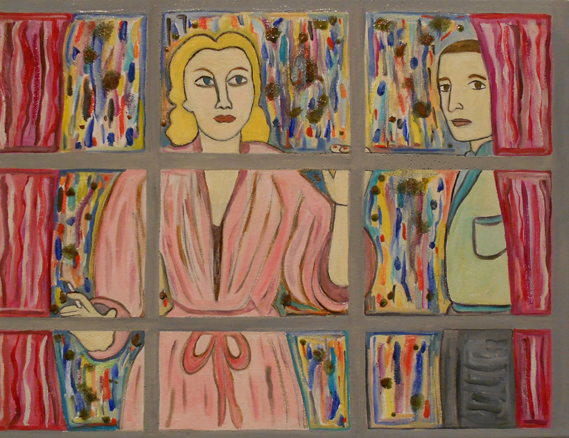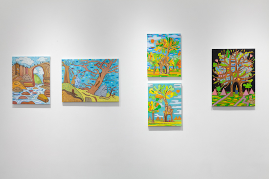 Lending considerable force to this point, Susan Bee, Schor’s co-editor for M/E/A/N/I/N/G: An Anthology of Artists Writings, Theory, and Criticism (and of M/E/A/N/I/N/G Online), at A.I.R. presents three separate series of bright, small-scale paintings that explore emotional conflict, trauma, and personal narrative in a movingly idiosyncratic way. The first series translates stills from old film noir. The second focuses on romantic landscape paintings by artists like Caspar David Friedrich, Marsden Hartley, and Charles Burchfield. The third series, which incorporates illustrated collage elements, features mythological and religious figures. When I see shows like this, it becomes clear that talented mature artists are making penetrating and imaginative work. They just don’t get invited to the international biennials.
