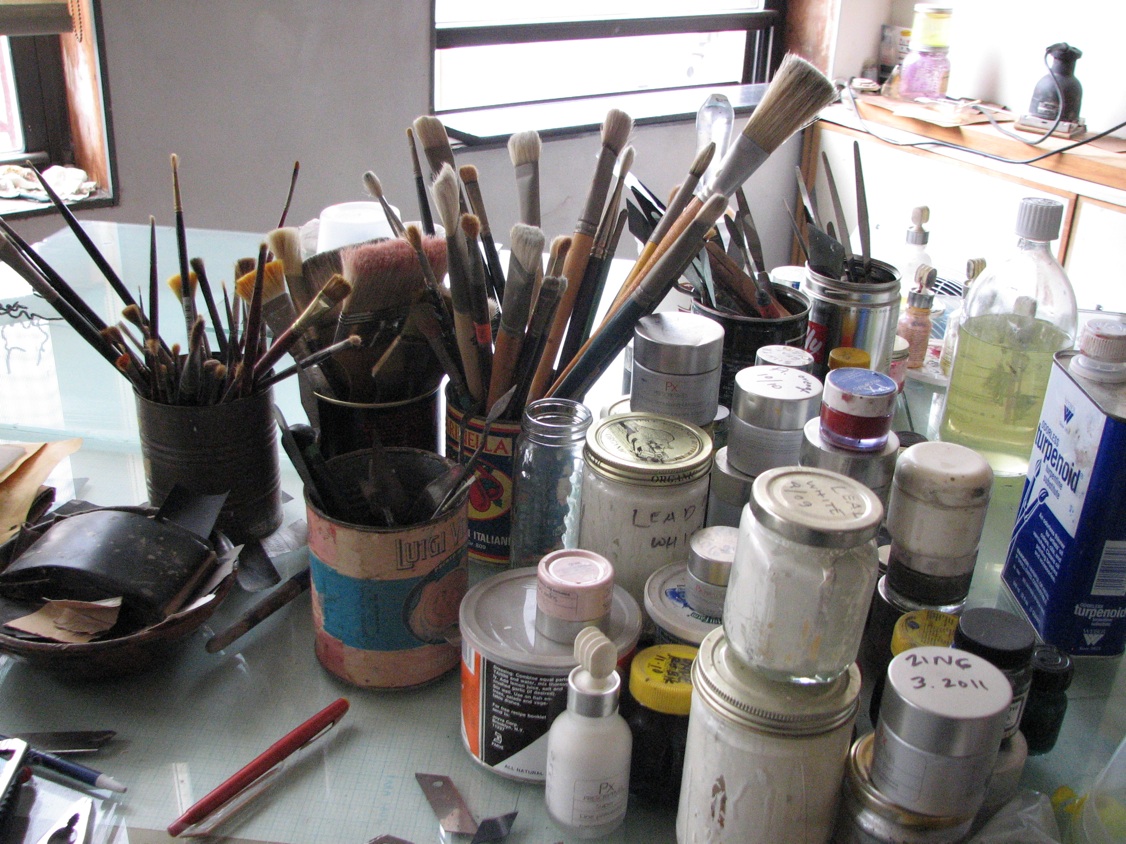 After I posted a few images of my work on Facebook, I received a thoughtful note from Joan Waltemath, painter, writer and Director of the Hoffberger School of Painting MFA program at the Maryland Institute College of Art. Discovering common ground in our painting practices, we decided to exchange studio visits, first meeting in Joan’s loft on Bowery, where she has had a studio for thirty years, and the next week, visiting my studio at the Elizabeth Foundation.