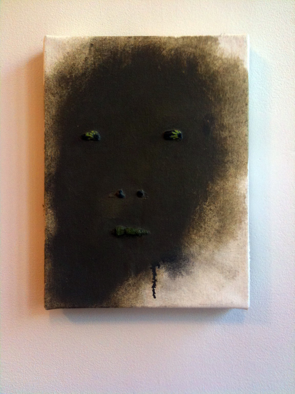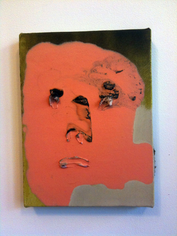 Comparing their process to Bill Murray’s improv, Sarah Faux and Tatiana Berg think sometimes you die onstage, but eventually you stop fearing death. After several rounds of email regrets and missed appointments (again, sorry Tatiana!), I finally made it out to Bed-Stuy the other day, painter Laurie Fendrich by my side, to check out “Dank,” Faux and Berg’s exhibition at Tompkins Projects. The two recent grads (Faux received a BA/BFA from Brown/RISD in 2009 and Berg a BFA from RISD the same year), who call themselves chronic over-producers, embrace a haphazard, accidental approach to painting in which “stripes of spray-paint and globs of oil chase a perverse formalism to the edge of every canvas.”