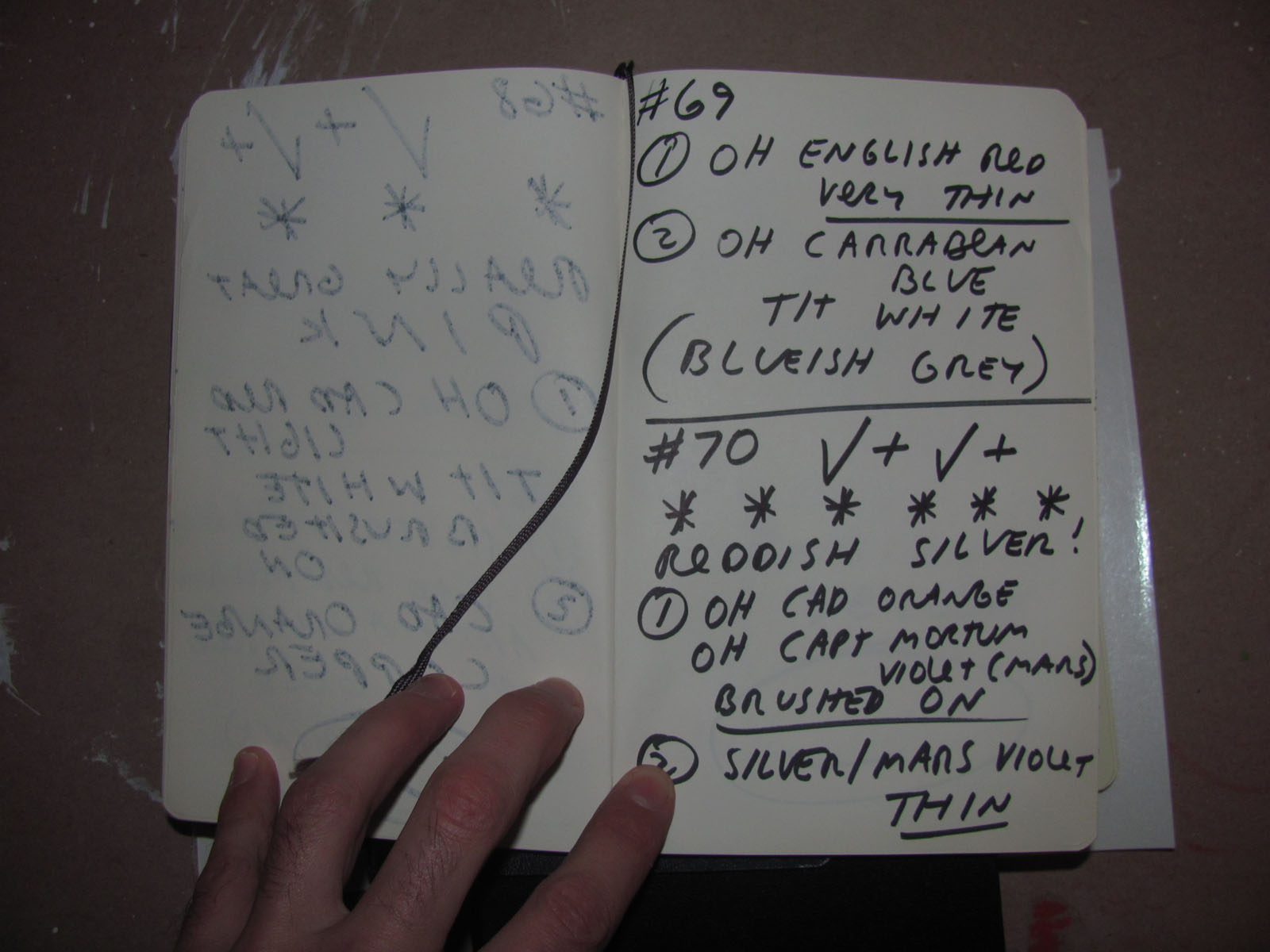 Here are some images of Abelow’s sketchbooks and paintings. The paintings may look spontaneous, but they are built methodically using specific rules that Abelow writes out in the sketchbooks.