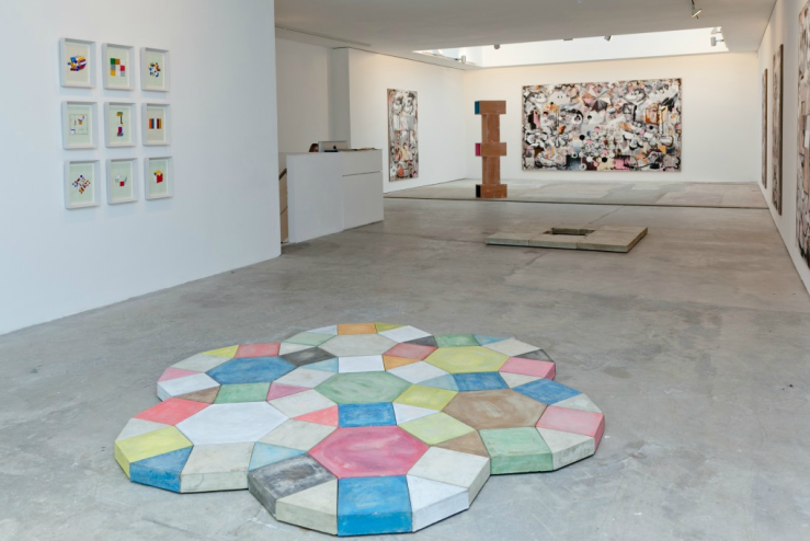 Taken from children’s statewide math tests that are used to measure children’s progress and thus the effectiveness of the schools, the geometric forms are part of a language system that Reigate believes bends truth through the use of statistics. Reigate took the test images and drew them on graph paper, removing them from their original statistical language and bringing them into the realm of modernist abstraction. In the sculptures, Reigate pushes the shapes from the original equations into freestanding, structural objects.