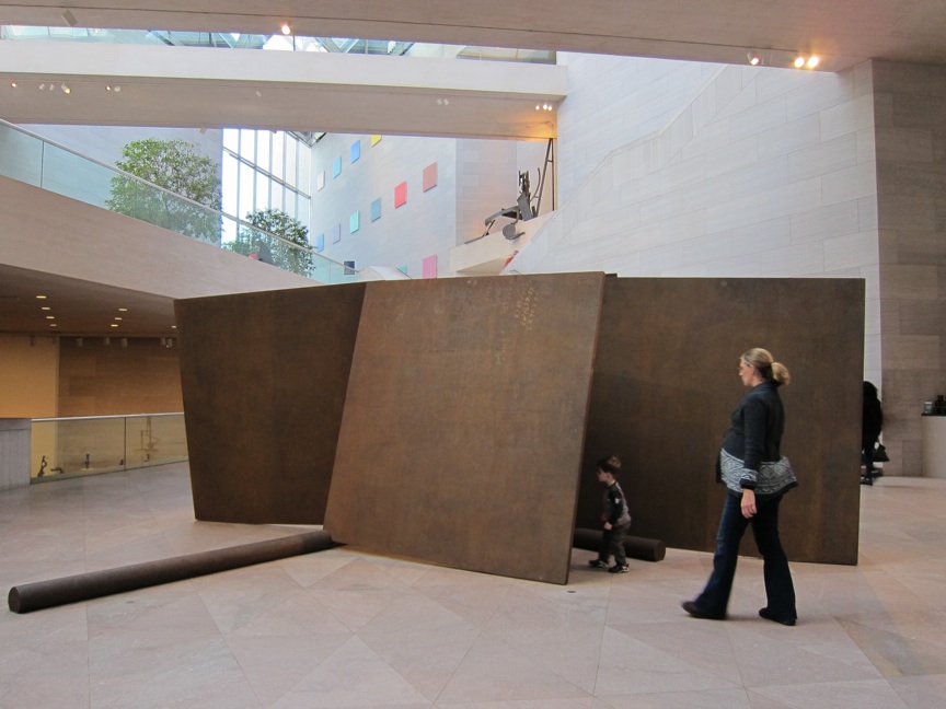 Yes it is true, Richard Serra's sculptures are not only dangerous, they are a huge curiosity to children. I was there when a young boy was pushing on one of the vertical plates. A security guard from the museum told the father, who was standing nearby, that if he did not control the child and get him to refrain from pushing on the plates that he would have to arrest the father.