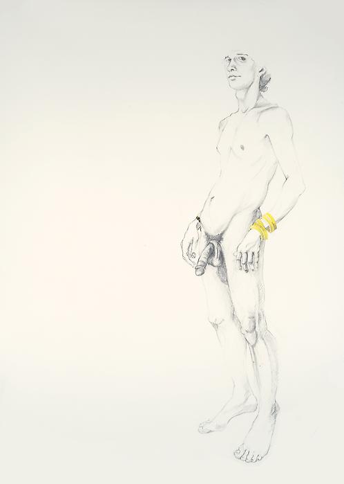 For “Paladins and Tourists,” a series of graphite and gouache drawings, Charlton�put an ad on the internet seeking male models with�athletic bodies. When the volunteers came to the studio,� Charlton, a