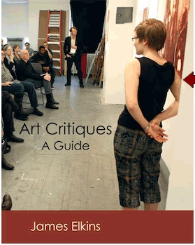 Contributed by Sharon Butler / After participating in final critiques at Brooklyn College and MICA last semester, I posted some notes for grad students about the critique process, and a reader suggested I check out a recent release from New Academia Publishing called Art Critiques: A Guide. Written by James Elkins, an art history professor who has participated in hundreds of critiques during his ongoing tenure at the School of the Art Institute of Chicago, the book analyzes the critique format, identifying five particular types –the Silent Professor Critique, the Conceptual Critique, the Silent Student Critique, the Boot Camp Critique, and the Anti-Critique. Elkins begins with a transcription of an actual critique, which he explains line-by-excruciating-line, attempting to make sense of the faculty’s encouraging comments, defenses, suggestions, and half-uttered challenges. The comments generally fall into two broad categories — either about meaning or technical issues — and Elkins uses tables and diagrams to decipher what faculty often fail to say clearly or comprehensively.