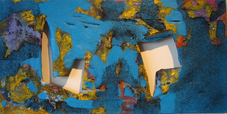 Martin Bromirski’s diminutive paintings (on display at StoreFront Bushwick this past month) feature circular shapes, clotty paint, bright colors, awkward slashes and gauged holes. At first glance, the paintings have a cheery, decorative quality, but below the shiny veneer, anger and anxiety are festering in the heavily worked surfaces and frustrated cutting. In a recent interview at Studio Critical, Bromirski called them “small intense freaky little abstract paintings,” which they definitely are. What’s brilliant is that he makes seemingly agreeable little paintings, but they have an underlying aggression that subverts that first friendly hello.