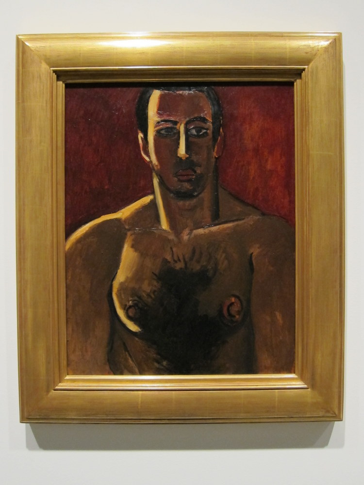 Nick Mauss (lives in New York, born 1980) curated an installation of small paintings and work on paper from the Whitney’s collection and the Smithsonian Archives of American Art. His mission is to to “derail art historical genealogies” so that we can invent new associations for the art work. I entered Mauss’s “intervention” through the wrong door and was surprised to see that someone was drawing plant forms like Ellsworth Kelly did in the 1960s–oh wait, that IS an Ellsworth Kelly–so I guess I experienced the “spatial, temporal, and psychological shift” that Mauss was after. Above: Marsden Hartley (1877�1943) Madawaska, Acadian Light-Heavy, Third Arrangement, 1940, oil on masonite 27 7/8 x 21 1/2 inches.