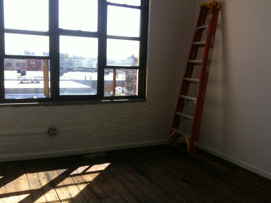 Tomorrow I’m moving to a new studio in one of Bushwick’s older artists’ buildings.The space features a beautiful view to the east, convenient location near the L train, two big white walls, a sink, plenty of windows, heat and AC, and a freight elevator steps away. What more could a painter want?