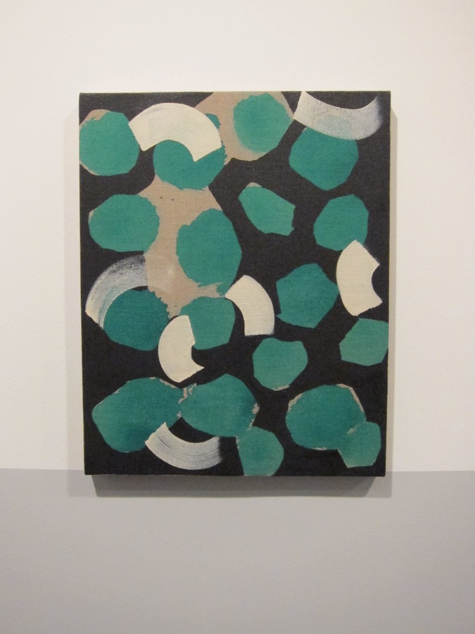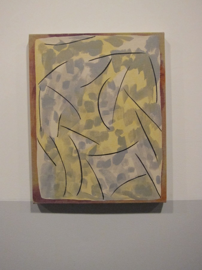 n Williamsburg yesterday, I stopped by Southfirst to see Ariel Dill’s exhibition “Oscillations,” a thought-provoking show of eight small paintings that take early 20th-century experimental abstraction as their point of departure. Southfirst co-founder and director Maika Pollack is the NY Observer’s museum critic, on the Bard faculty, and an expert on painting in fin-de-siecle France, so naturally her statement for the show is terrific.