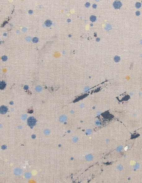 Fredrik Vaerslev uses carefully applied industrial spray paint and solvents on raw linen to recreate the look of used drop cloths. Born in Norway in 1979, Vaerslev, who graduated last year with an MFA from The Art Academy in Malm�, Sweden, is interested in the relationship between abstraction, representation, and ornamentation defined by Clement Greenberg. “Everything that usually serves representation and