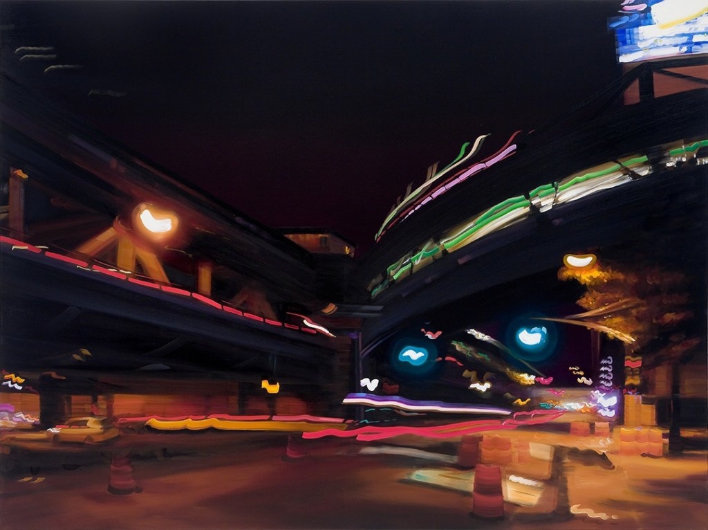 Large-scale photo-realistic paintings of the city at night.