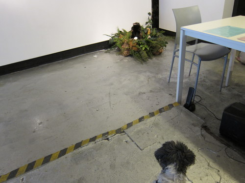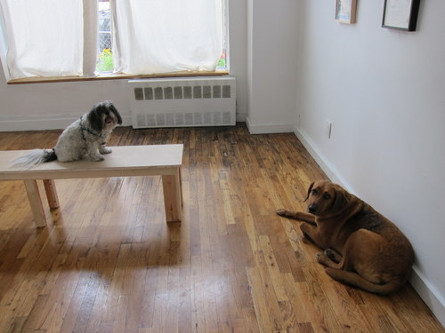 Only the leashes keep them from friending Angelina Gualdoni‘s tiny baby at Regina Rex. (Note to Angelina: Check out The M Word:Real Mothers in Contemporary Art, edited by Myrel Chernick and Jennie Kleina, a 2011 anthology about art and motherhood. Recently arrived in my mailbox, The M Word looks like a good read and a terrific resource.) //