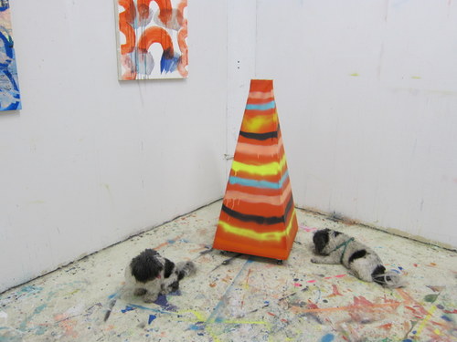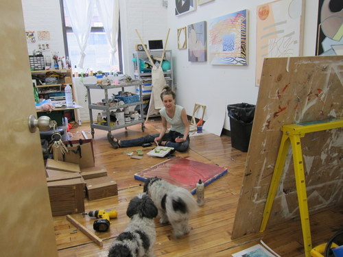 Studio dogs at heart, they make themselves at home among the paintings in Tatiana Berg‘s studio. //