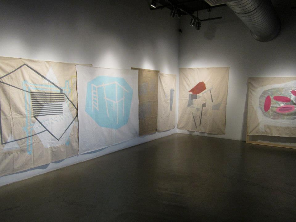 Nice work; I love the overlapping unstretched canvases.