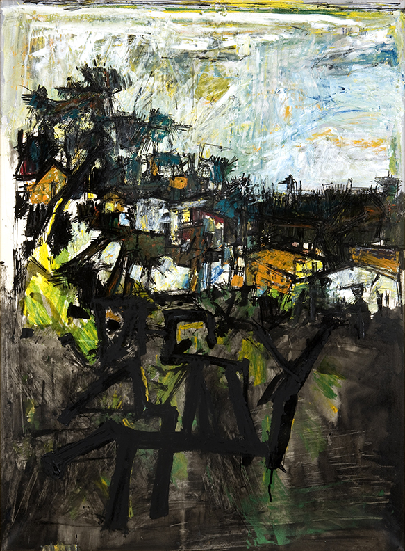 Sudhir Patwardhan (b. 1949), The Fall; 1998, oil on canvas. Collection of Virginia and Ravi Akhoury.