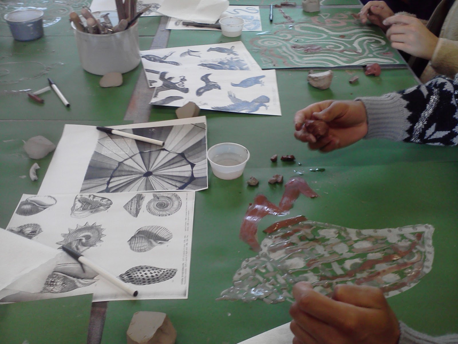 This week, in conjunction with “Collage Insights,” a solo exhibition of collages, sketchbooks and never-before-shown source photographs, galler-artist Austin Thomas of Pocket Utopia was the Artist-in-Residence at Brooks School, a 9-12 grade college prep in North Andover, Massachusetts. With Amy Graham, the art department chair and director of the Lehman Art Center, Thomas worked with the students, teaching them that drawing is a language not an academic discipline. “Tomorrow I will set up a still life and the students will look at it (and not draw) for 20 minutes, ” Thomas wrote me from Brooks on Tuesday. “They will be ‘still with life,’ and then they will describe their ‘drawings’ to me. It’s part Beuysian, part Agnes Martin, all Pocket Utopia – relational and collaged.” Here are some of the pictures she sent along with her note.