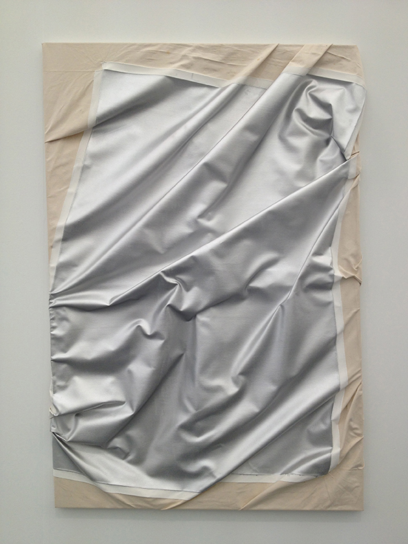 Rachel Harrison‘s installation includes spray painted Adirondack chairs and a few bolts of folded canvas. Pretty funny take on the ongoing sculpture/painting dialogue. That’s a big Jacqueline Humphries silver painting in the background.
