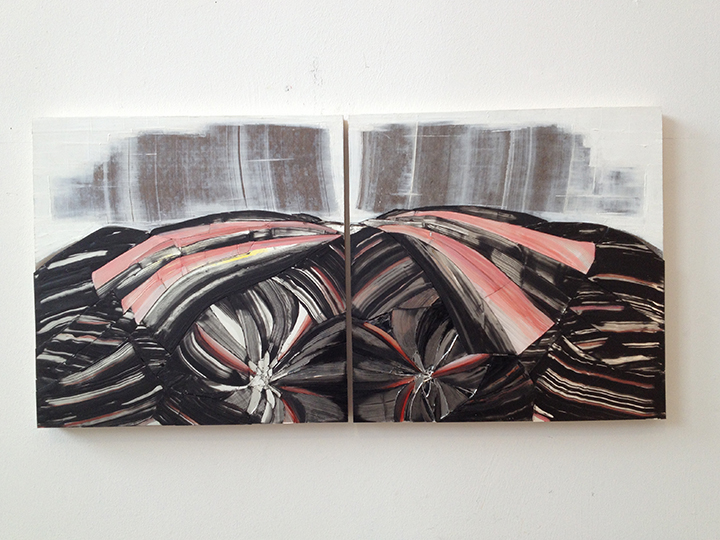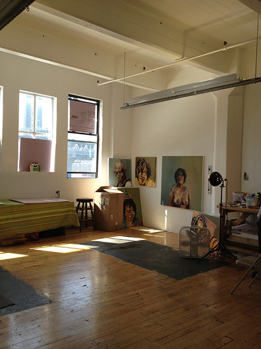 Contributed by Sharon Butler / Originally in Tribeca and now located in DUMBO, the Marie Walsh Sharpe Studio Program has been granting free studio space to visual artists since 1991. Phong Bui, Rochelle Feinstein, Chris Martin, Harriet Shorr and Don Voisine selected the sixteen 2013 residents from more than 1000 applicants. Last week I stopped by their spring Open Studios, where the residents presented new work in spacious lofts overlooking the East River and the Manhattan Bridge. What a view. Here are some snaps of paintings on view.
