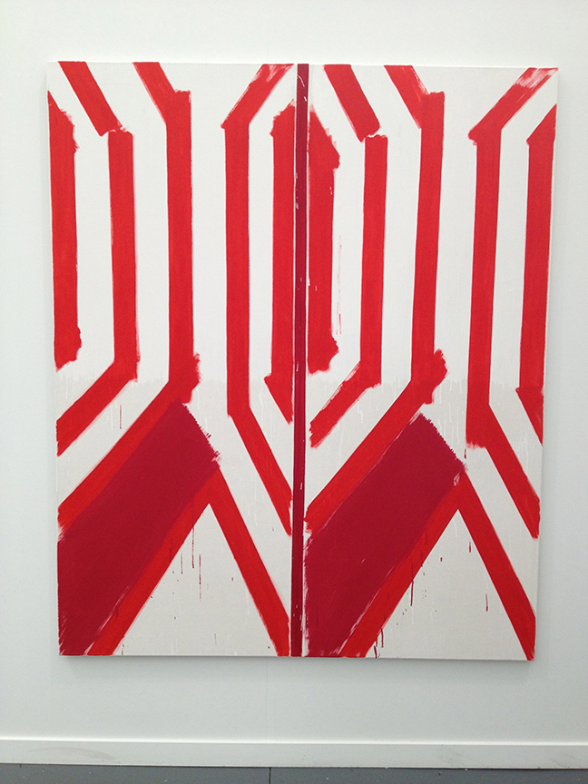 At Frieze New York yesterday, in the densely hung Galerie Frank Elbaz booth, I stumbled upon two fantastic paintings by Bernard Piffaretti, a French abstract painter who wasn’t included in Frieze’s list of participating artists.