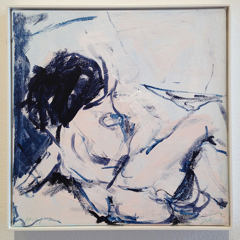 This month Lehmann Maupin has mounted Emin exhibitions in their two NYC locations. Not surprisingly since she’s been teaching it for two years, drawing figures prominently in the shows, which include a series of tiny, limited-palette paintings and gouache drawings. In the back room in the Chelsea space, the show also boasts a neon sign and video of a small fox, but her heart seems most invested in the gestural drawings and small bronze sculptures, coated with a chalky white patina that gives them a clunky plaster-of-Paris look.
