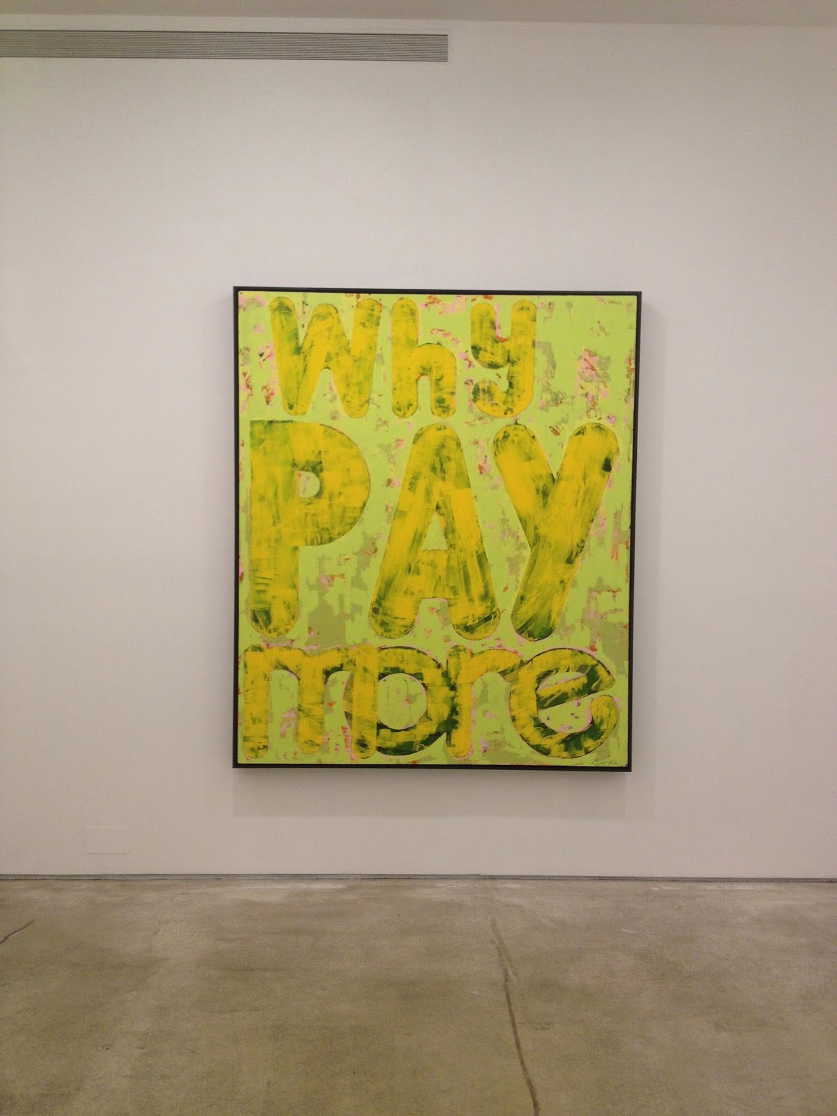 Kerry James Marshall @ Jack Shainman instagram.com/p/eNy5elJf6r/. Marshall has moved away from the heroic figurative paintings for which he is best known toward a more self-consciously conceptual mode that combines abstraction, text, neon, and sculptural installation. Focusing on money power, agency, and value, Marshall cynically exploits recent stylistic tropes in an effort to reveal the “real-politic of the art making enterprise.”