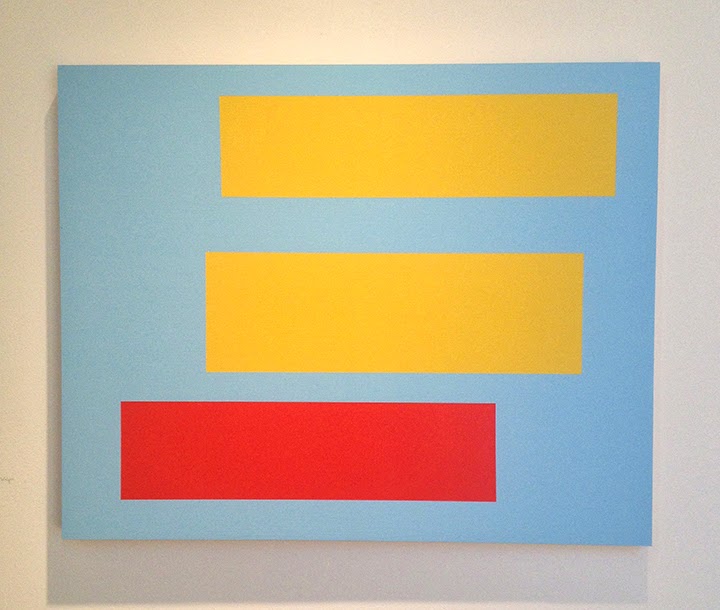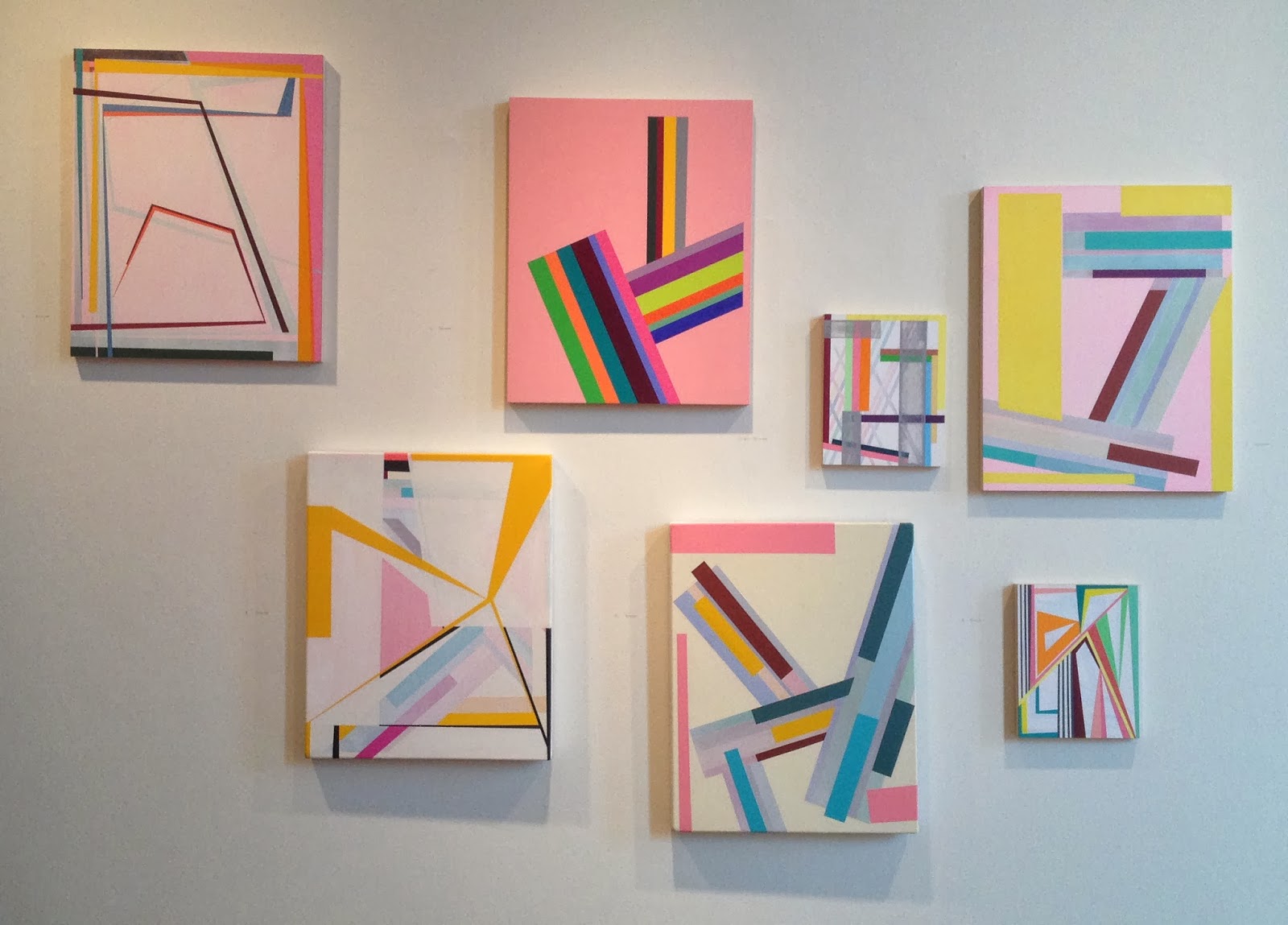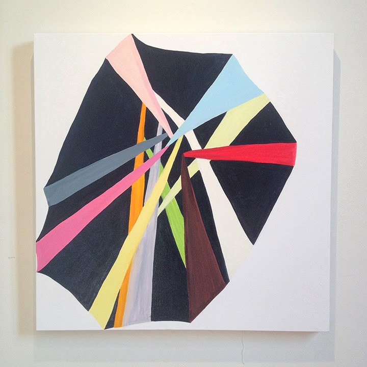 “The artists may vary in style, subject matter, temperament, and conceptual framework, but they are unified by their no-nonsense approach to painting,” Carroll writes in his statement for the show. “Most of the work on view presents simple geometric shapes that are executed in broad expanses of pure color. From cerebral to laid-back, the artists explore line, value, color, and texture in their compositions. Despite the works’ superficial differences, each piece, however minimal, reveals the touch of the artist’s hand. For the artists in the show, paint is a means to an end, not the end. Abstraction, likewise, is not a cul-de-sac, but a living, breathing means of visual communication.”