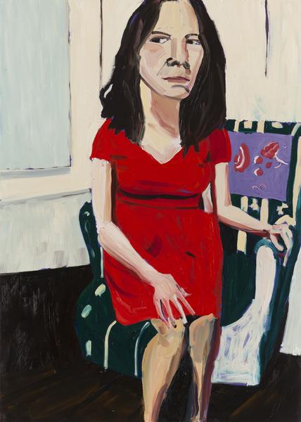 | Chantal Joffe, Night Self-Portrait in a Red Dress, 2014, oil on board, 84 x 60 inches |