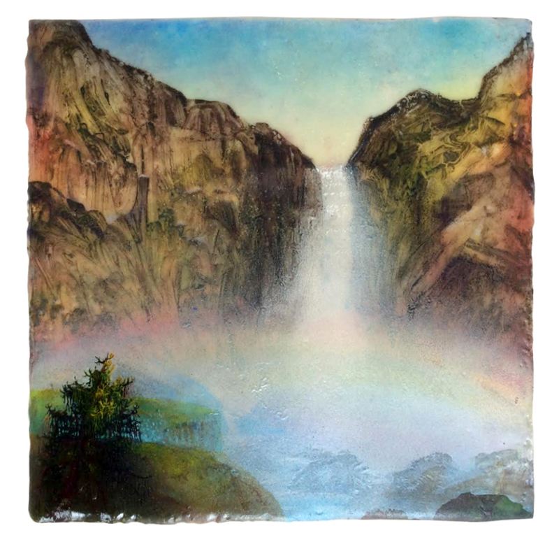 painting over that, and then I put on a layer of straight beeswax, heating it up so it’s completely smooth and flat. Then I paint