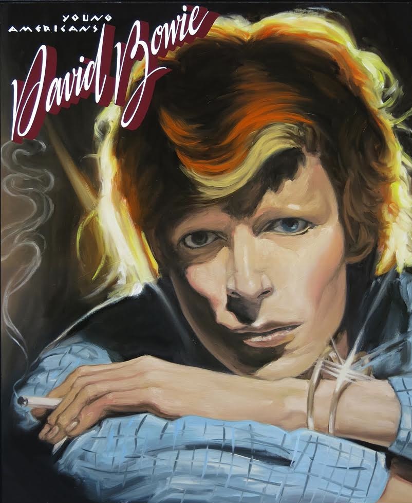 DK: It’s doing just enough to express what I’m trying to express, but not going too far. It’s even less rational than that, it’s about a feeling. With the Prince painting, the song was “I Wanna Be Your Lover“, and I knew it had to exude that. Especially in the eyes and body language. Of course he is doing that in the cover but that has to be broadened to the tradition of figurative painting. There is a halo around him that had to embody an almost religious presence. With David Bowie, he had to be saying with his eyes, “Can You Hear Me?” it has to be this asking, to the viewer. It had to be on one hand bold, a challenge, and also a sadness and desperation.