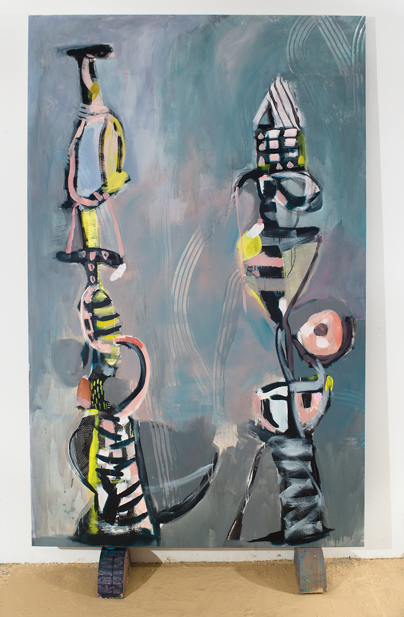 Emily Noelle Lambert, Duo, 2015, acrylic on canvas with wood, 109 x 60 inches.