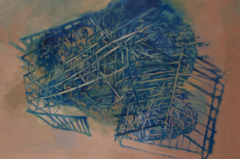 Mariam Stephan‘s studio, which is attached to her house, feature shifting perspectives and unstable architectural forms. On a Fullbright in Egypt, Stephan was impressed by the sense of history, the changes that have taken place in the landscape over geologic time, and the current political upheaval. She’s working toward a January solo show in Cairo.