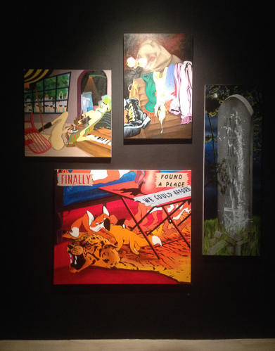 In the NYTimes Roberta Smith writes that there are plenty of abstract paintings in the show, but that formal concerns are not the primary focus:
