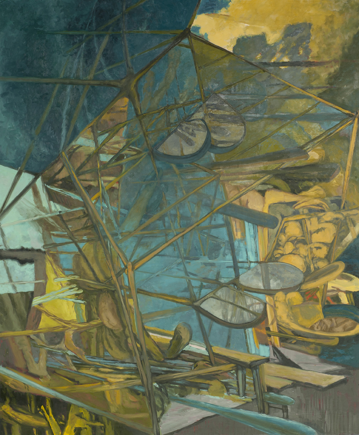 �The paintings are a twisted dreamscape of journeys and arrivals, of imagined objects simultaneously collapsing and growing,” Stephan told me during a visit to her Greensboro, North Carolina, studio last year. Multiple forms are situated in the same space, and different points in time are revealed at once. At first glance the paintings appear dystopic–dark, mysterious, inaccessible–but on closer viewing they are less foreboding. The more you look, the more you see. Subtle colors come forward, and as new edges and shapes begin to emerge, the scenes change. Rich with allusion and symbolism, hence with ambiguity, Stephan’s paintings are seductive and ultimately hopeful. In the face of disintegration and complexity, she bets on rebirth and renewal.
