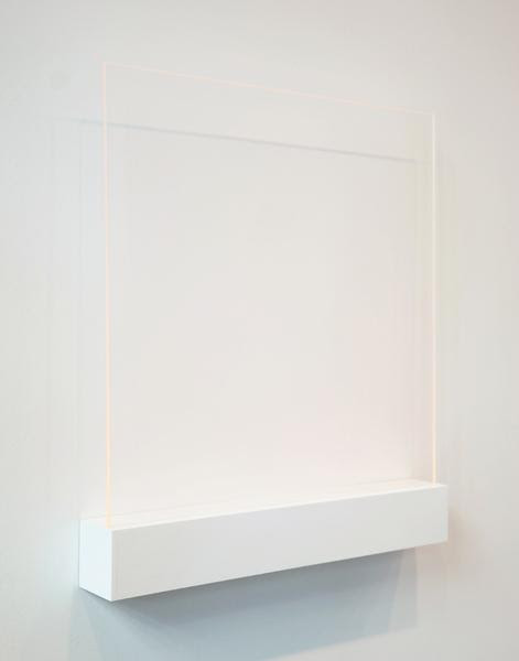 In 1938, Gropius designed and built a home at 68 Baker Bridge Road in Lincoln, Massachusetts, for his family. A Modernist masterpiece, the house featured stark white walls throughout, but Gropius was unhappy with the glare that bounced off the second floor deck. In 1949, he decided to paint one of the walls a very pale pink, which eliminated the glare and created the enduring illusion that light was falling across the wall. This innovation worked so well that the color is now available in premixed house paint. The pieces in the show span a range of materials, including Plexiglas, LED-lit acrylic, paper, fabric, paint, and projected light.