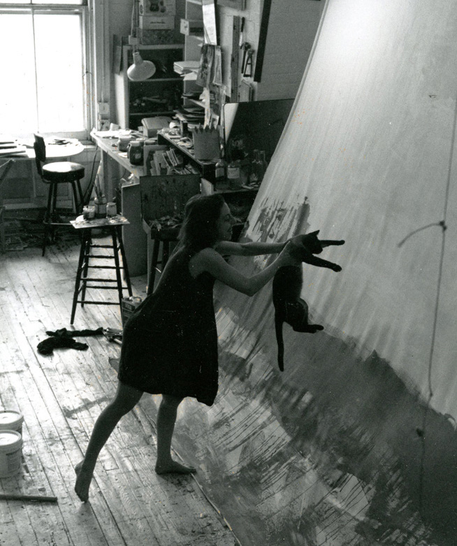 Fig. 1 (at top of post): I like this photograph of me and my furry friend. Here we are, collaborating on a backdrop for a theatre troupe. It was my first New York studio out of grad school and it had a lot of light and a big cage of doves. It smelled of cats.
