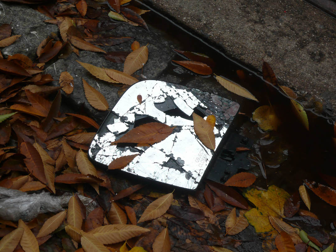 I take long walks and shoot photographs of discarded objects, then post the photos to Instagram (etc). Walking is good for my head, and my finds are often poetic. For instance, in this image, the reflection of the nearby landscape produces an unexpected point of view. The ritual often leads to a day well-spent in the painting studio. I’ve been doing this for eight years.