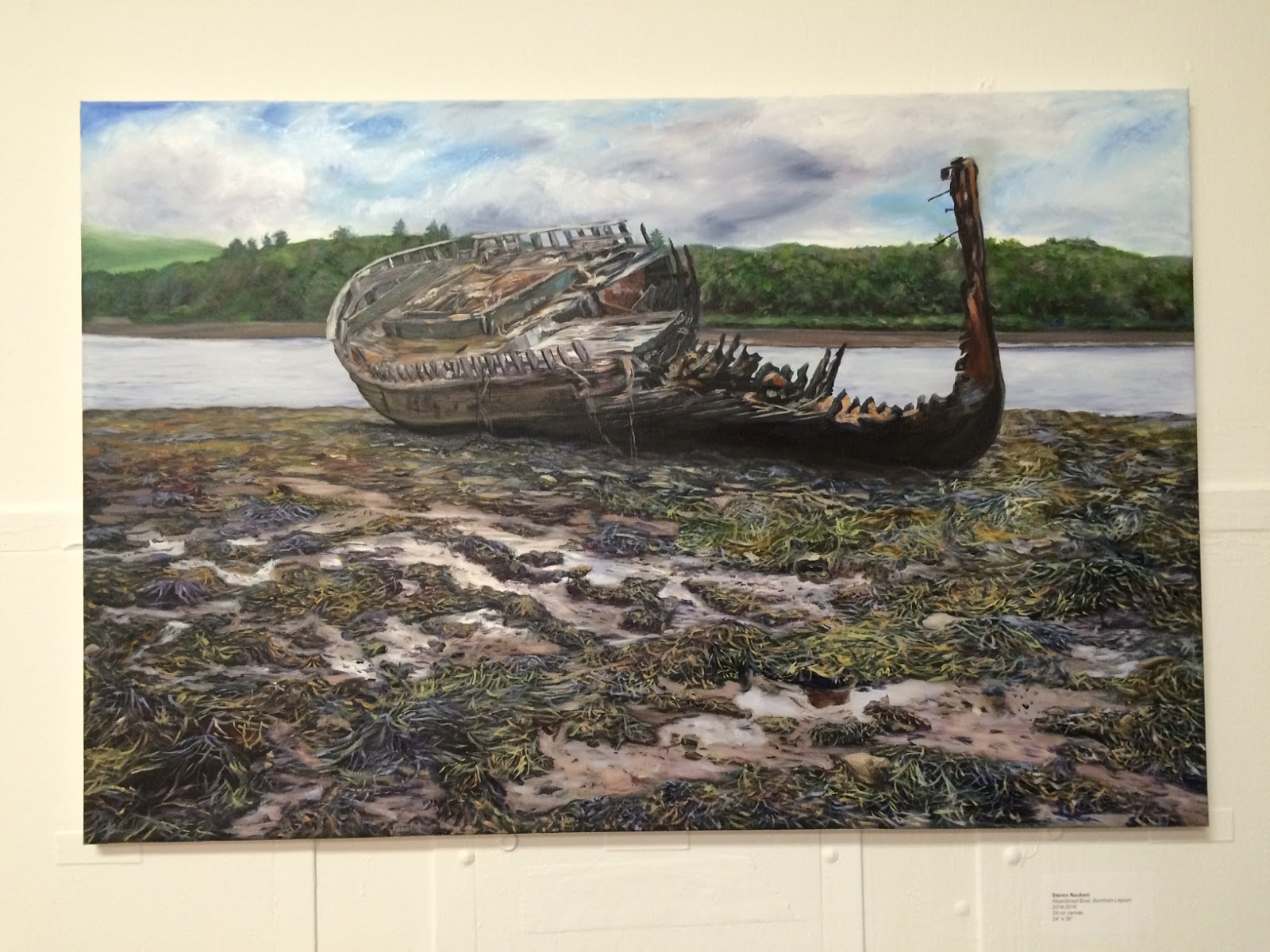 Steven Naukam, Abandoned Boat, Burnham Lagoon, 2016, oil on canvas, 24 x 36 inches. Brooklyn College MFA exhibition.