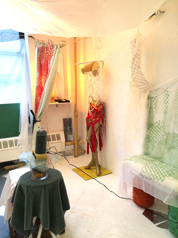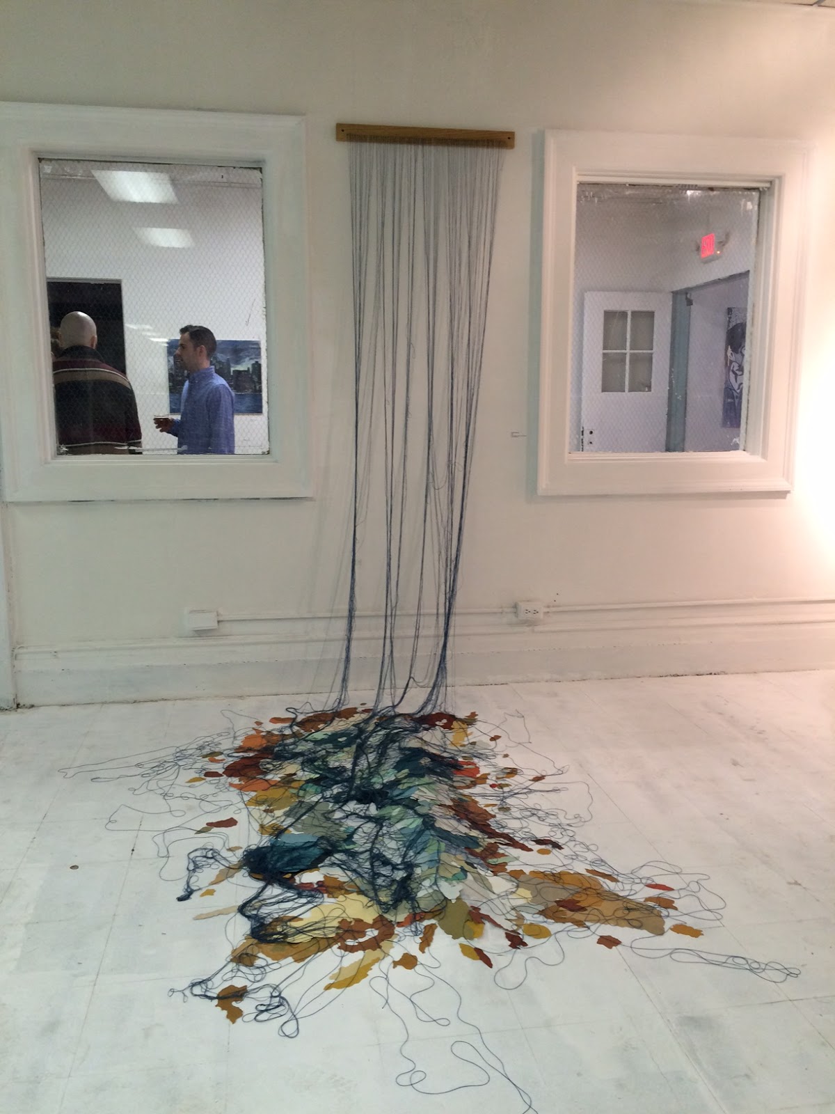 Tegan Bozyna, 2016, thread, paper, paint, wood. Brooklyn College MFA exhibition.