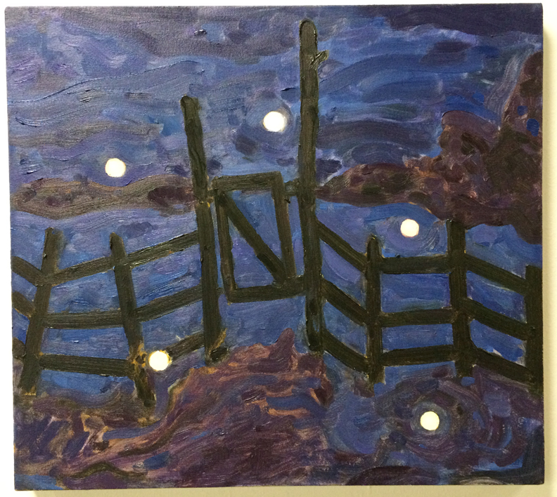 [Image at top: Javan Grover, The Gate, 2015, oil on canvas, 19 x 21 inches. Brooklyn College MFA exhibition.]