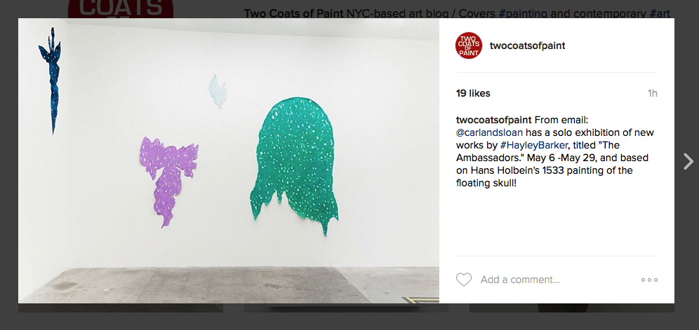 Don’t forget to follow Two Coats of Paint on Instagram. Lots of good images from exhibitions, the inbox, events, blog posts, and more @twocoatsofpaint / Thx!