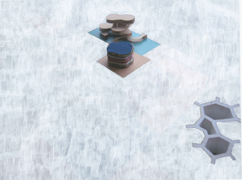 Dudek focuses primarily on sculpture installations, but lately he has been working on paper and book projects, too. When we met for coffee last week he shared this intriguing series, which he calls the “White Outs.” The hand-painted images are photographs of work in his studio, but the background has been whited out, effectively disconnecting fragments of his sculptures from their environment.