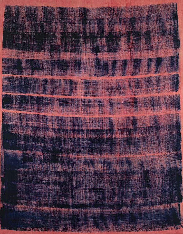 Sharon Butler: In your paintings from the past five years, you’ve explored repetitive horizontal brush stroke imagery in which the action of making the stroke, dragging the brush across the panel, becomes the image itself. How did you arrive at this seemingly reductive approach?