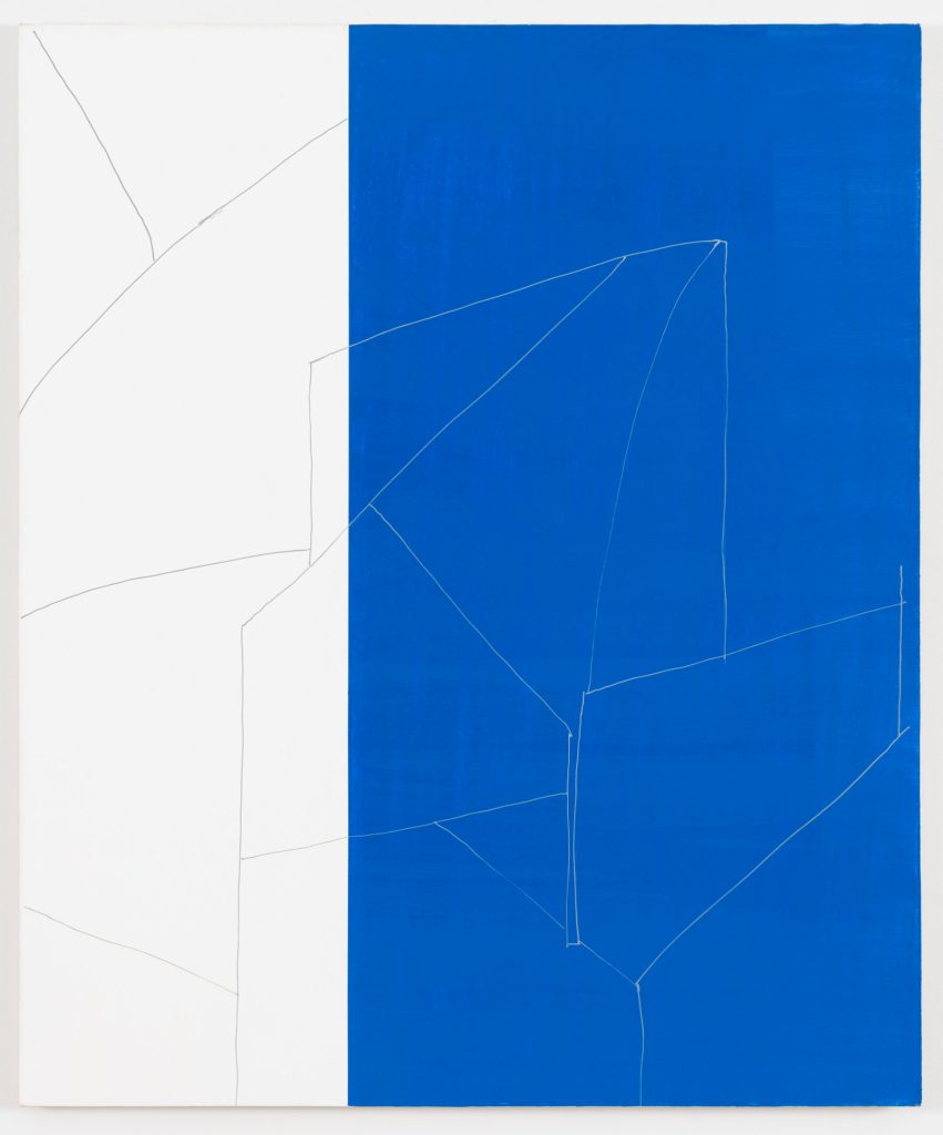 We are still left to untangle form from content. How do we square the names, dates and cut-to-scale vinyl rectangles that Diao links to Newman’s artworks, with Diao’s own masterful paint handling, shifting from gloss to mat, the light generated by a field of chalky blue seamlessly combined with vinyl appliqué, and glitches, stray pencil lines and nuanced washes that show these to be not charts and diagrams but rather paintings of considerable beauty?