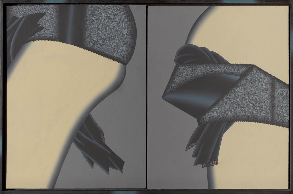 Contributed by Laurie Fendrich / The erotically charged art of Chicago Imagist painter Christina Ramberg (1946–1995), whose retrospective is currently on view at the Art Institute of Chicago, aligns chronologically with the second-wave feminism of the 1970s and 80s. Today’s third-wave feminists (some say it’s now fourth-wave) frequently disparage that incarnation of the movement for privileging white women’s worries, and worse, for its obliviousness to institutional misogyny. Fortunately, Art Institute curators Mark Pascale and Thea Liberty Nichols don’t try to pigeonhole Ramberg’s work into that framework. Although she considered herself a feminist, an aggrieved one she was not. Her art was personal, not political, and it doesn’t fit neatly into standardized versions of feminism. Remarkably, the artist found a way to mix together sharp and provocative subject matter about women’s desires with a classical, pristine aesthetic.