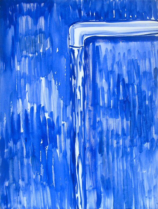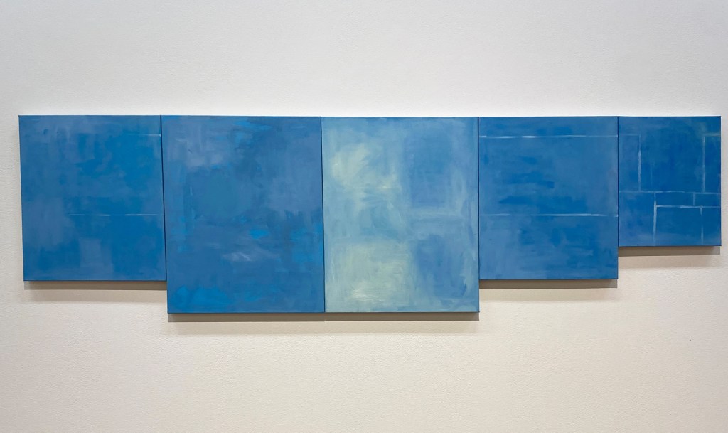 Contributed by Jonathan Stevenson / “Out of the Blue” at Frosch & Co boasts a tight concept and adds real snap to the conversation presumed suspended until after Labor Day. The idea is to explore how the color blue ramifies through the lenses of different painters. That might seem like a merely modular survey, since other colors too have distinct connotations. But blue’s, as the gallery’s press statement notes, seem to swing more dramatically – between cool and warm, masculine and feminine, obscene and pure, barbaric and royal, stormy and serene. This quality makes for an unusually rich array.