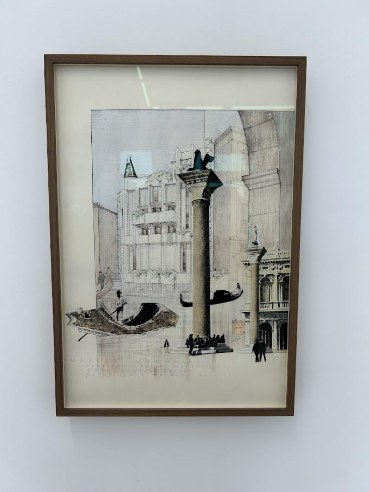 Another fine exhibition was the small but mighty architectural investigation “Unbuilt Venice” at Ncontemporary on the island of Giudecca, which includes drawings and proposals for unfinished projects by four famous architects: Louis Kahn, Le Corbusier, Isamu Noguchi, and Frank Lloyd Wright. The artist Cristian Chironi envisaged this revelation of “missed opportunities.” His own multidisciplinary practice, represented here, includes fashioning sculptures from collaged catalogs and placing them in plexiglass boxes that notionally serve as alternative building proposals. The show also features Chironi’s interpretation of Le Corbusier’s rejected project in sound, played on vinyl.