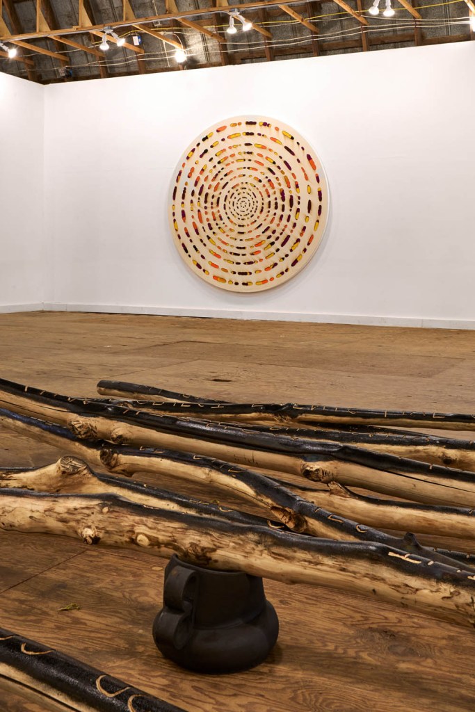 KK: We share a “truth in materials” approach to artmaking, believing that materials speak and make meaning in the work. Our work is physical, sculptural, and direct. There is no illusion or narrative. We share pattern and repetition in our work and connect over rhythms and abstraction. We diverge in that my work stays close to the construct of paintings that hang on a wall canvas, color, stretchers – while her work is sculptural and is primarily in dialogue with the floor and architecture.