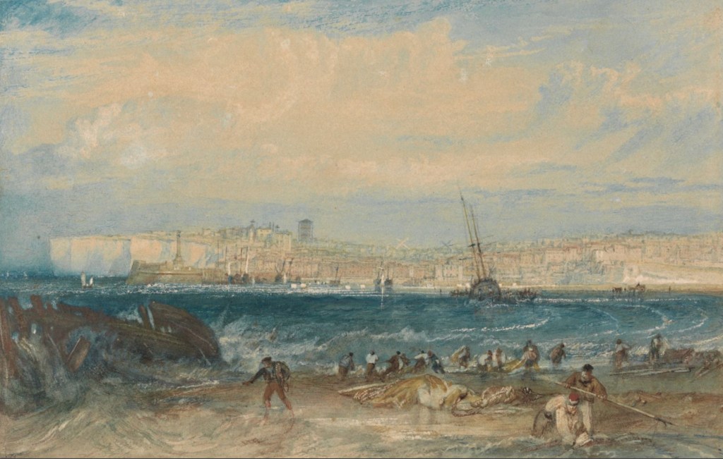 Joseph Mallord William Turner, despite the aristocratic concatenation of names, was born in London to the daughter of a butcher and a barber-cum-wigmaker. He began painting when he was a child. At age 10, he was sent away to school in Margate, Kent. As a teenager, he began taking art classes at the Somerset branch of the Royal Academy, as well as studying with an architect and learning to make topographical drawings. In 1790, Turner became a member of the Royal Academy, and later a professor there. His first exhibitions were of watercolors, which garnered him praise, and within a few years he began exhibiting oil paintings. A recluse and a difficult (“eccentric”) man, Turner nevertheless dominated the British art scene for several decades simply on the basis of his work and died wealthy.